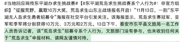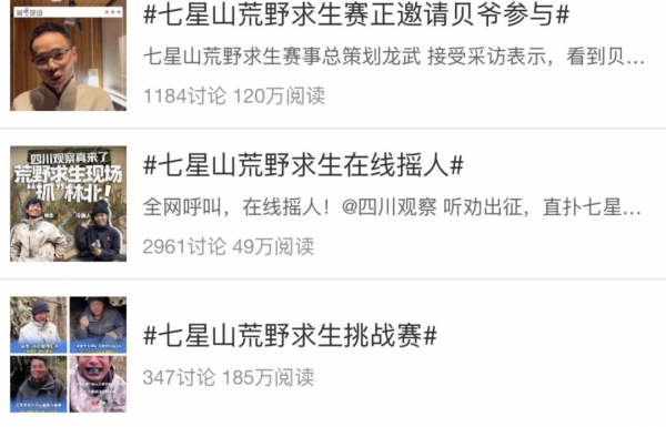 张家界七星山总经理也在接受媒体采访中表示:荒野比赛为景区带来了50亿流量,每天至少30人来电咨询参赛活动。