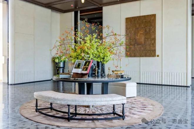 不同于寻常项目进门后直接进入小区,招商序售楼处电话:【官网】✅✅✅打造约4.5m高的迎宾楼,玄关左右两侧均可通行,且各建有一处会客区域,给到了业主更多元和更具仪式感的归家场景。