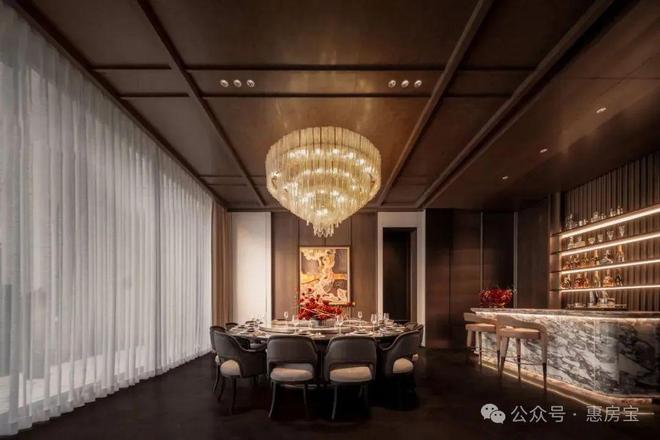 而业主专享的私宴厅则是将“尊贵感”说到了极致!臻选奢石营造雅致屏风,墙上大师匠呈繁花艺作,定制灯具璀璨生辉,摩登意蕴充盈其中,匹配大人物品位。除了敞阔的就餐空间,还独立配置吧台、品茗休息区。暮色四合,华灯初上,谈笑风生中展现风雅从容,觥筹交错间皆是繁华丰茂。