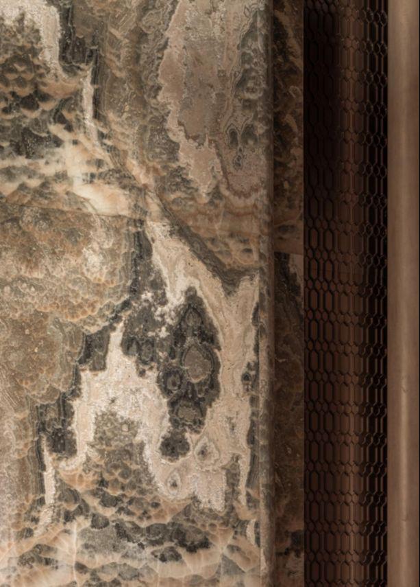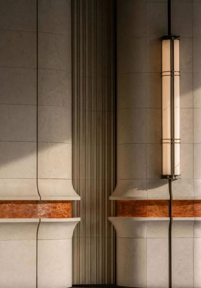 整个公区的引入沉香米黄、透光云石、安哥拉黑、福鼎黑、橙皮红、宝格丽紫等近二十种全球奢石,宛如一座流动的奢石博物馆。