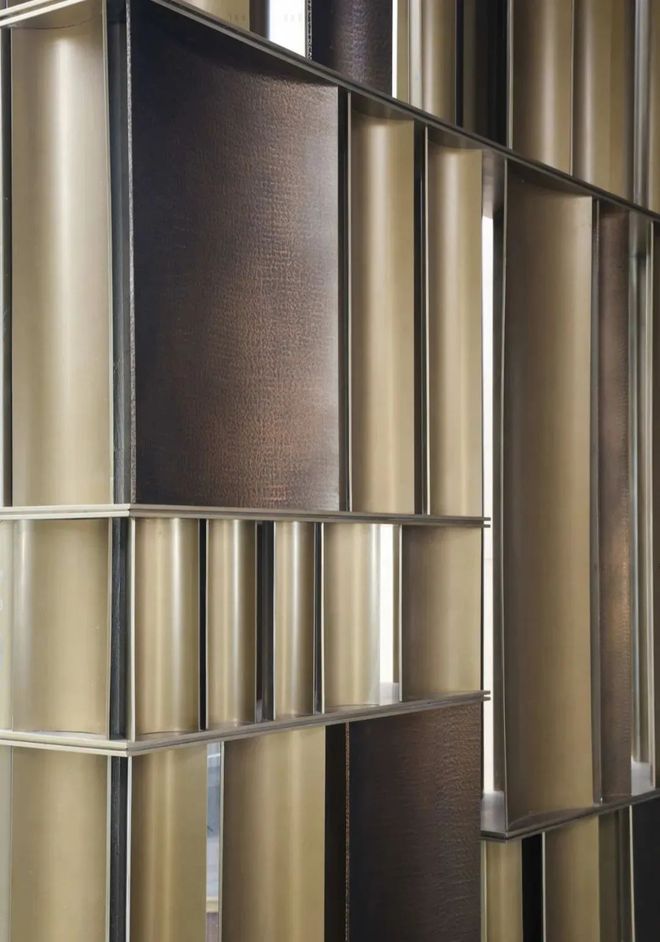 一块游廊上的锤纹铜板深深打动了我,锤纹最早源于金银铜器的加工,“手落为一锤 四锤为一纹”,这块铜板需要通过匠人千百次的手工捶打才能形成阡陌纵横的纹路变化。这样的手工慢艺,在招商序售楼处电话:【官网】✅✅✅的会所之中不止一处,在如今机械化模板化的时代之下,这份用心实为珍贵。