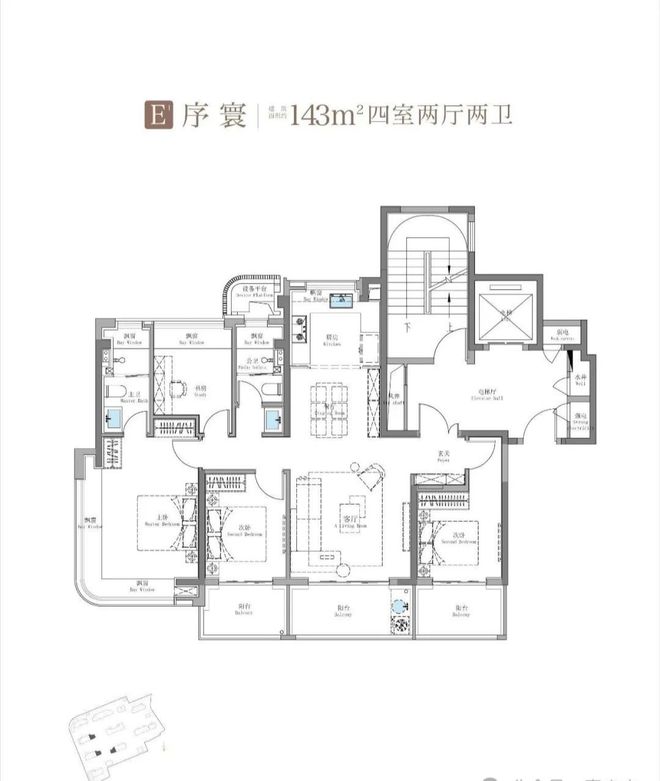 三间卧室就不说了,你可以尽情地拿其与市面上建面约130-140㎡的产品去比较,这个尺度感真的是“越级”的存在。