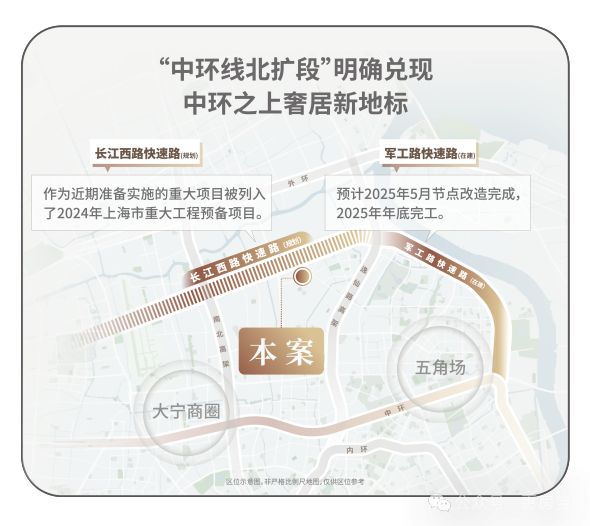 中环线北扩段明确兑现,军工路快速路25年开工,长江西路快速路列入上海市重大工程清单预备项目,快速链通城心,随着中环线北扩段的政策明确,淞南将正式进入中环时间。未来经逸仙高架,进入南北高架、内环高架、中环高架,可快速链通南北上海;多维立体路网全面升级,未来区域价值再攀新高。